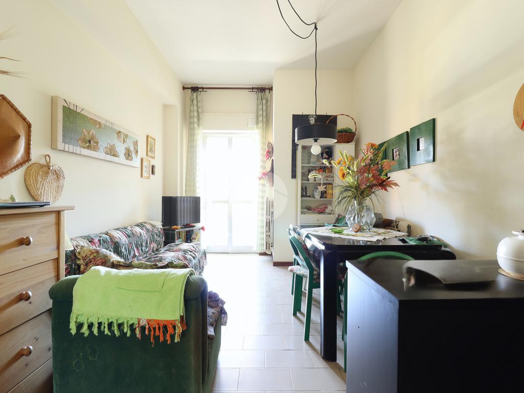 L’immobile è situato al secondo piano con ascensore e presenta un soggiorno con cucinotto dal quale si accede a un ampio terrazzo, perfetto da vivere nei momenti di relax. Un disimpegno conduce alla zona notte composta da una camera matrimoniale, una camera singola e un bagno finestrato con box doccia.