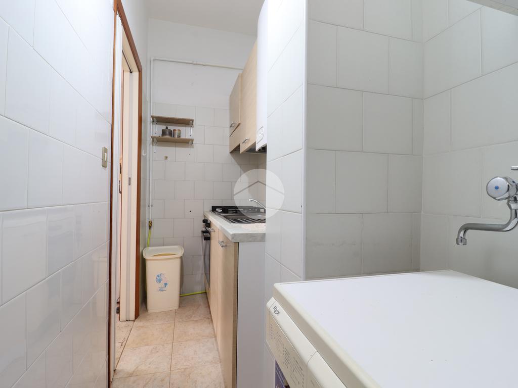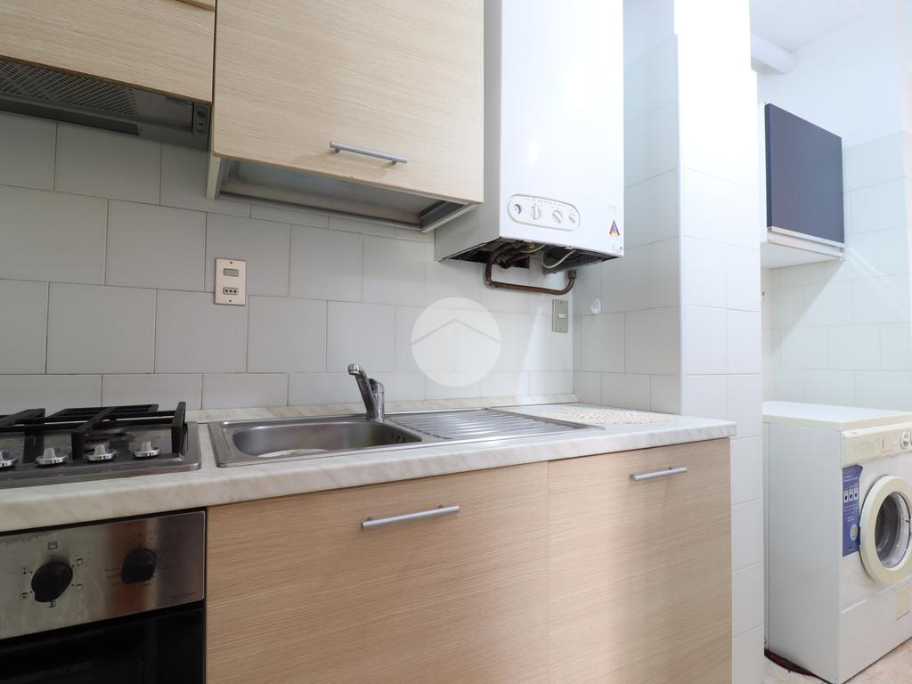 L’immobile si apre su un luminoso soggiorno con accesso diretto al terrazzo, dotato di tende da sole, perfetto per godersi momenti di relax all’aperto. Adiacente al soggiorno troviamo una cucina compatta e funzionale distinta dall’ambiente principale.